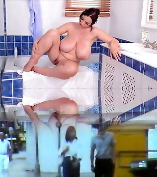 Super-naughty 52 Cougar with unbelievable tits playing with her nipples until she cums in her bath.