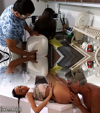 Hindo Latina Stepsister Porks with her Nephew in the Kitchen Cum in Mouth and Eats Cum