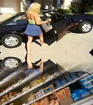 Ellie Roe In Busty Platinum-blonde With Purple Skirt And Tan Stockings