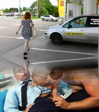 Hot Brunette Deepthroat Shaft Taxi Driver in Car - Oral Creampie