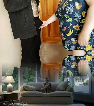 Round Japanese chick having clothed sex with her neighbor