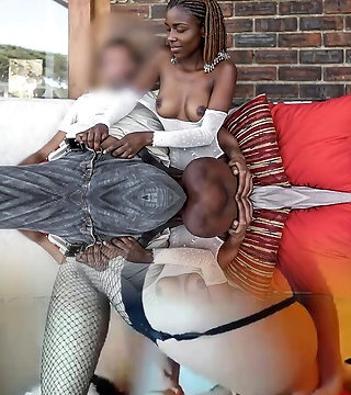 African bride babe sucks and fucks white boyfriends huge dick