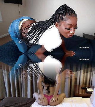 Chunky black stepdaughter enjoys belt dick fuck with lez mom Ryan Keely