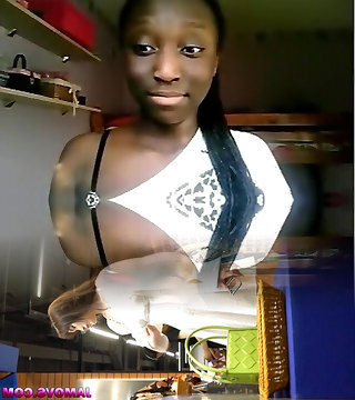 Black nymph flashes her ass and big tits on cam