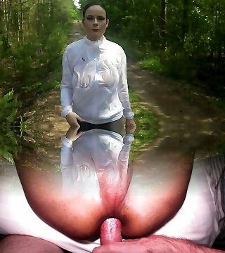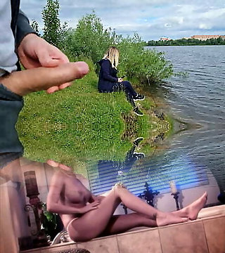 The exhibitionist man saw a lonely damsel in nature and took out his schlong in front of her and began to masturbate the dick in front unfamiliar beauty, he risks intimidating her, but she likes to look at a thick male dick and wants to observe his cumshot