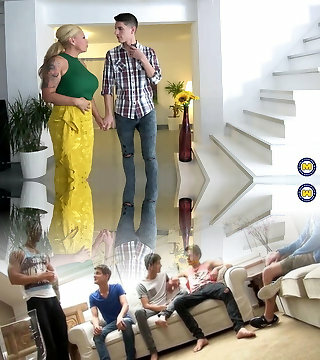 Beautiful bbw milf beauty seduces a guy, wanting to taste his youthful pecker and ride it with naughty passion