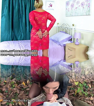Blonde Milf showing wanking in sheer nylon retro suspenders