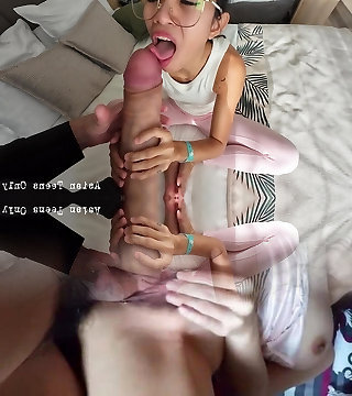 She sucks the elderly boy cock and makes him cum in her young mouth