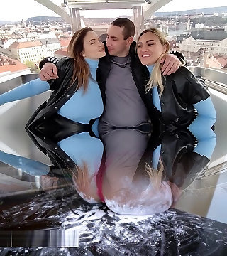 Sumptuous cash breezies flashing their boobies for cash in the limo