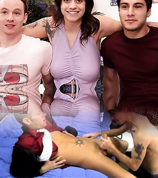 Amateur threeway sex for the brown-haired who loves having sex sucking and fucking Two big cocks at the same time