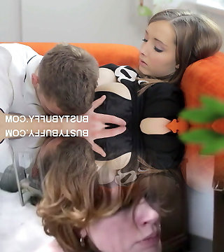 My stepsister waits for me bare in sofa because she knows that I come directly to hit her with my salami