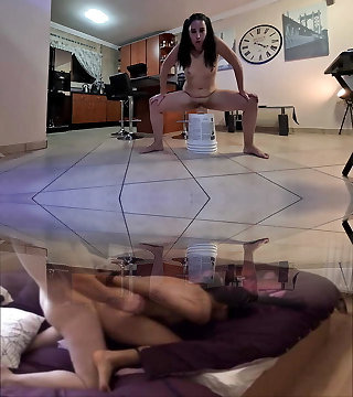 Pigtailed chubby teen doing the 5 minute fake penis fuck squat challenge