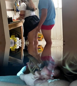 Step Mom caught fapping and been drilled unexpectedly while husband isn't home