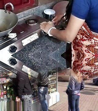 Horny mom witness girl boyfriend do fast fuck in the kitchen