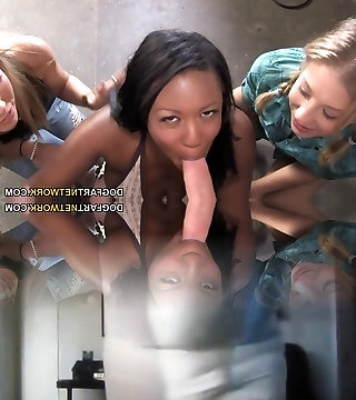 Caucasian Dahlia Sky blowjobbing an army of black studs in hardcore vid