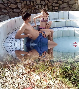I drill my stepbrother in the pool waterfall