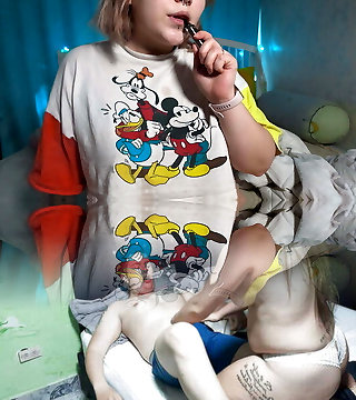 Cougar stepmommy gives her teen stepdaughter lovely rimjob