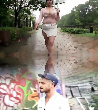 Large ass booty bbw ssbbw white girl milf in mini sundress finger fucking in public and stranger truck blowjob close up