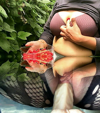 Mmm Eat the yummy Rosebery...Sexy Girl' flashes her bosom in the public garden