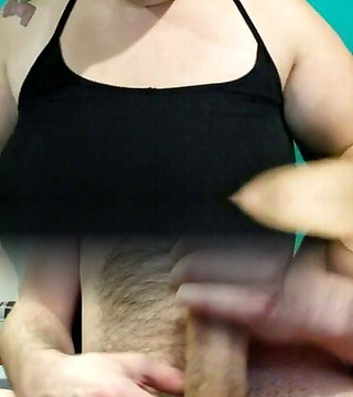 He cannot control himself and blows a load on her satin nightie but cum hungry super-naughty thick tits girl does not stop and after cummi