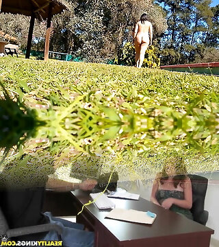 Busty secretary Kylie K likes flashing her bosoms for her naked boss