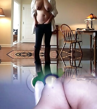 mother-in-law undressed, demonstrating her big milk cans and sucking my cock
