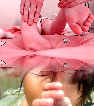 First footjob from cute Asian girl with perfect funbags