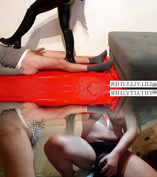 Hot Shoejob in Overknee Boots leather latex leggings and latex gloves with ample Cumshot