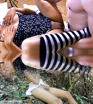 young lesbians smoke a pile, and urinate