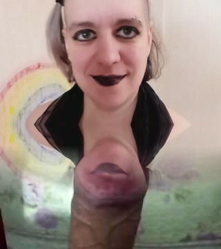 Big Titty Goth Queen Inhales My Dick After Putting On Black Lip Liner And Sucks My Cum Out