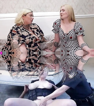two chubby lesbians ravage dildo