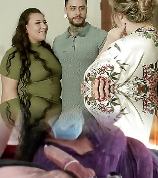 Powerful BBW slut fucked in missionary by fat bangers in 3some