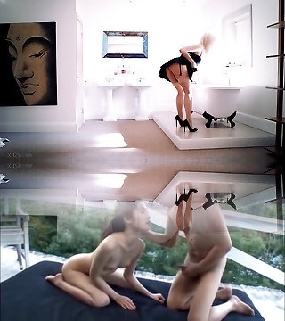 Japanese maid enjoys hardcore threesome