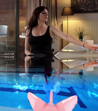 Stepparent has threesome with Plus-size Redhead maid and his step-son's sex doll