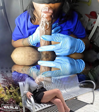 Asian nurse chick blows a rock hard dick