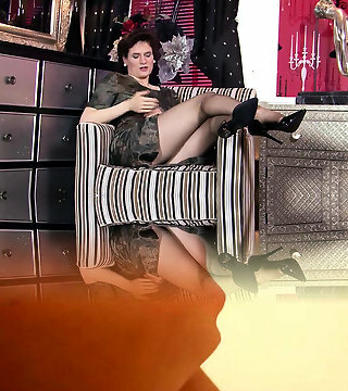 American milf Heidi peels off her pantyhose and plays