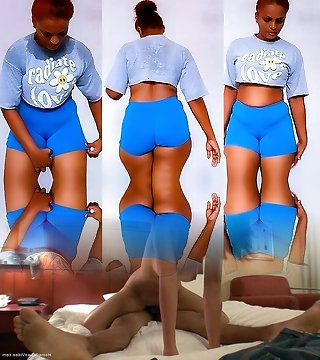 Fitness girl with a big backside in tight shorts was fucked on the table