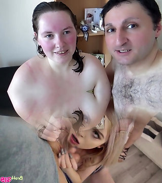 2 HOT Nymphs Dominate One Guy !!! He CUMS 2 TIMES to SHAKING Dumping PUSSY - CUTE STEP SISTER and FRIEND Threesome !!!