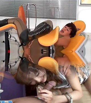 Horny slut nurse with huge breasts have a blowjob for her client and cum in her mouth