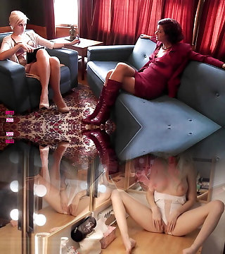 Tea party turns into a sex orgy. Two grannys fuck each other wildly in their fuck-holes