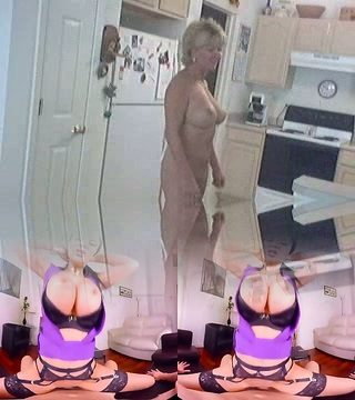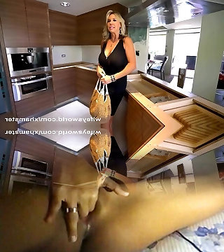 Tastey big tittied MILF wife masturbates in kitchen for me