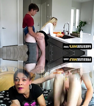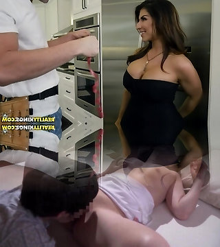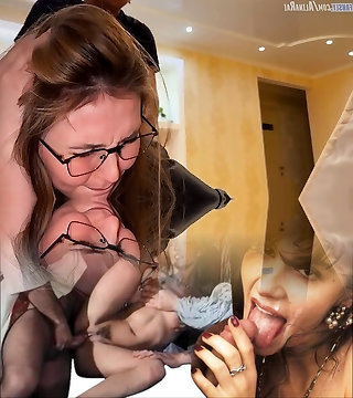 The stepson took advantage of the situation and filled his step-mom's vulva with thick sperm